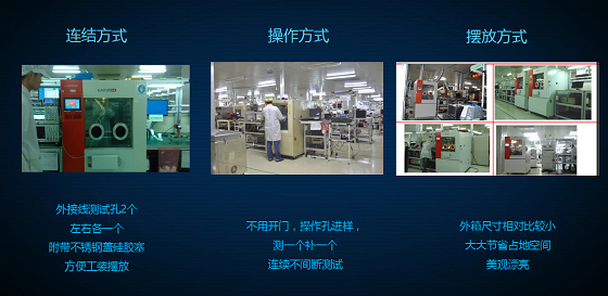 在線式高低溫試驗(yàn)箱設(shè)備可長(zhǎng)期在線低溫運(yùn)行玻璃使用大視窗,門上附帶兩個(gè)可供操作的操作孔(硅膠防靜電),可在觀察產(chǎn)品的同時(shí)進(jìn)行取拿產(chǎn)品。高效:以10G SFP+為例,一個(gè)班(10個(gè)小時(shí))可產(chǎn)1800支模塊 -